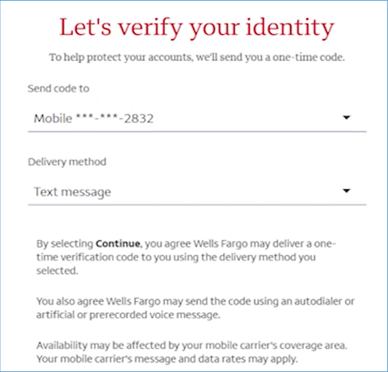 You will then be prompted to select a two factor contact phone or email and delivery method.
